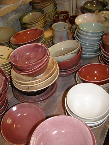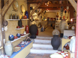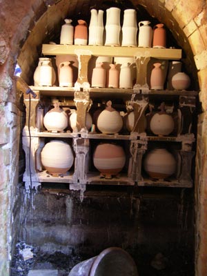The studio is housed in an old stable. It is here that the majority of pieces are made with local clay using a potter’s wheel.