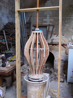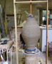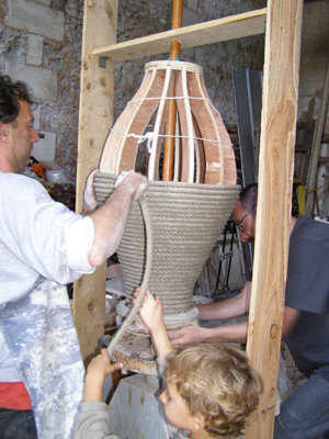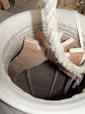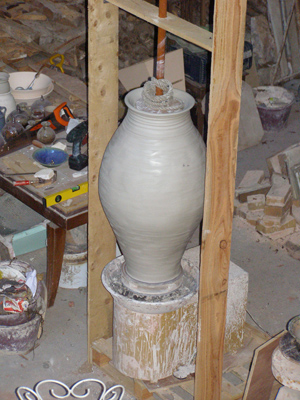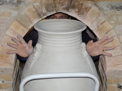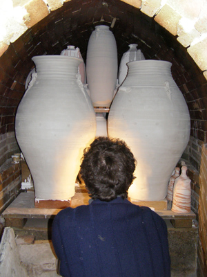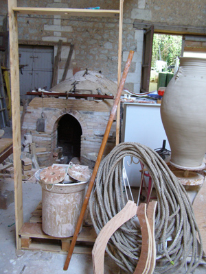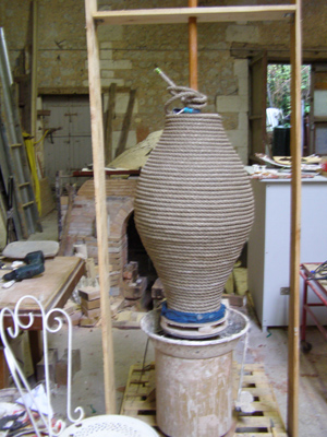 This ancient method, used throughout the Mediterranean basin, consists of modelling with soft clay onto a tower, the pottery is formed on an interior shell that can be taken apart, made out of wood and wound around with rope. After a period of drying time, the wooden shell, as well as the rope, is removed from the interior to allow the piece to dry completelyAnagama, the dragon kiln